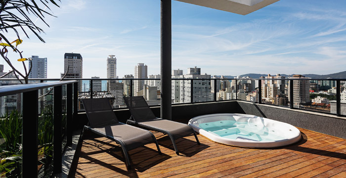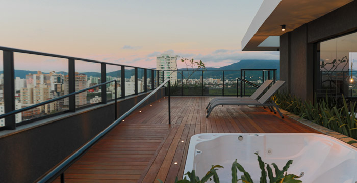 Sunview Tower foi um empreendimento visionário. Seu rooftop, um espaço pioneiro nas edificações da cidade, conta com 561m², pé-direito prolongado e um misto de áreas cobertas e ao ar livre.